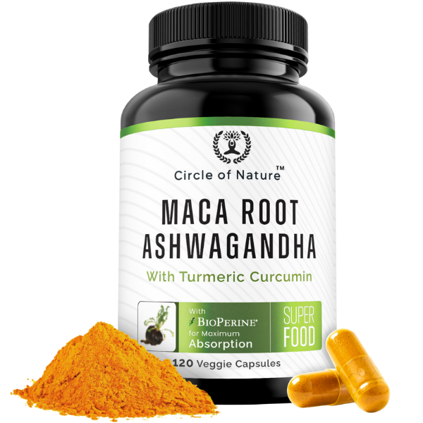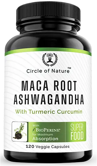 Each capsules contains Maca Root, Ashwagandha, Curcumin and Bioperine